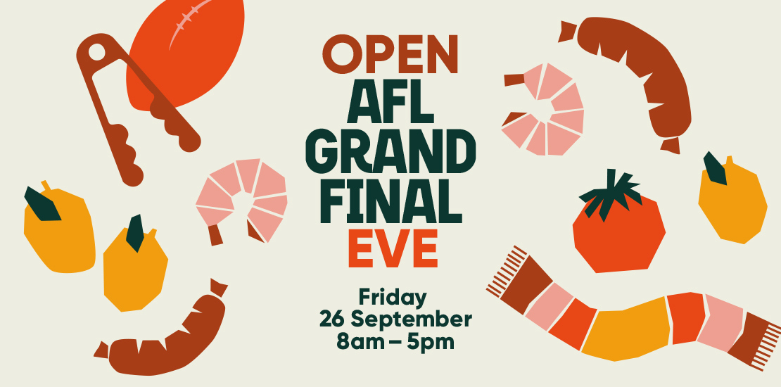- The Market will be open the Friday before the AFL Grand Final - Friday 26 September from 8am - 5pm.