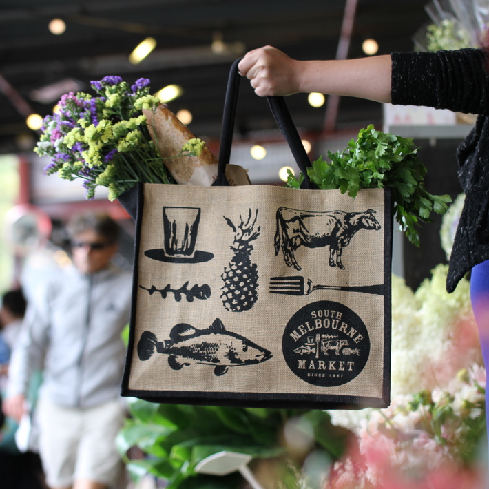 Forgot to bring a bag to the Market? These sturdy hessian bags are large, strong and have handles that are easy on the shoulders.
