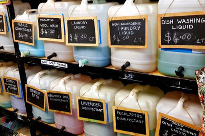 Plastic bottles: take them to The Soap Shop to fill with liquid detergents and cleansers. (Or if you like a fancier look, why not decant them into a bottle made from ceramic or glass once you get home?)