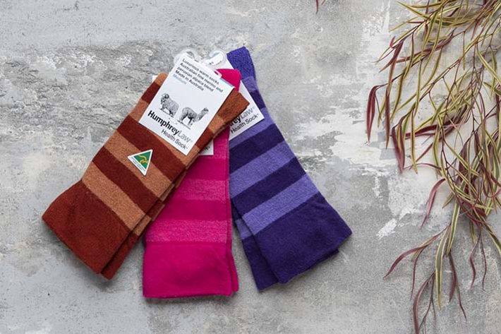 The Sock Shop (Aisle B) have a unique and diverse array of Australian Made labels including Humphrey Law Socks - made in Melbourne with the finest natural yarns; Australian wool, cotton, Peruvian-sourced alpaca and bamboo-rayon.