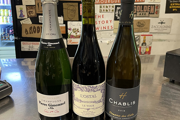 The Little Wine Shop in Aisle B have an extensive assortment of French wines and suggest you try the L'Passes-tout-bien a delicious burgandy, the Domaine Tariquet Sauvingnon Blanc or a bottle of Moët & Chandon.