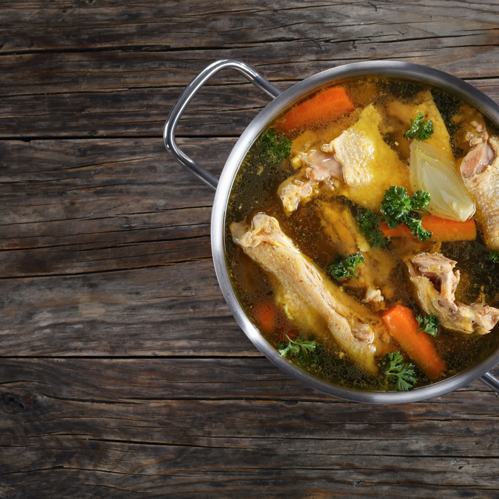 For meat stocks the same principle can be applied with saving vegetable scraps. Add the bones of your Sunday roast (cooked chicken carcass, lamb and beef bones all work) and again add some seasoning, plenty of water and cook low and slow until you have a flavourful and wholesome stock ready for gravies, sauces or any culinary creation that requires liquid!