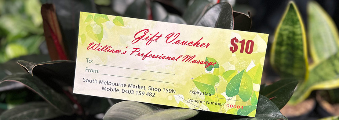 Dr Shen, William's Professional Massage and Kelly's Massage have gift vouchers for their wide range of massages services in-store.