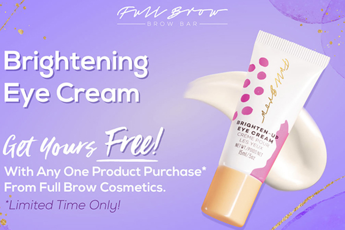 Special Mother's Day promotion. Free Eye Cream (value $35) with any one product purchase from Full Brow Cosmetics. Valid May 1-16 2021.