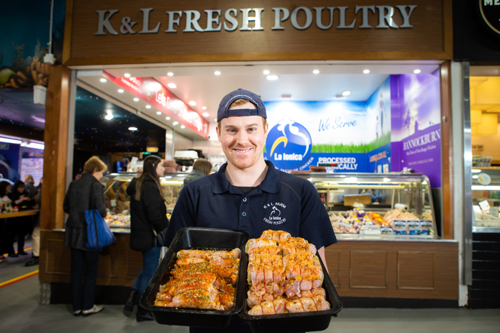 Chris from K&L Poultry says "We have all your marinated BBQ needs! We have lemon pepper and peri peri breast sticks, peanut or honey soy thigh sticks, lemon pepper, lemongrass and coriander sundried tomato breast and thighs, plus honey soy wingette and drumettes.