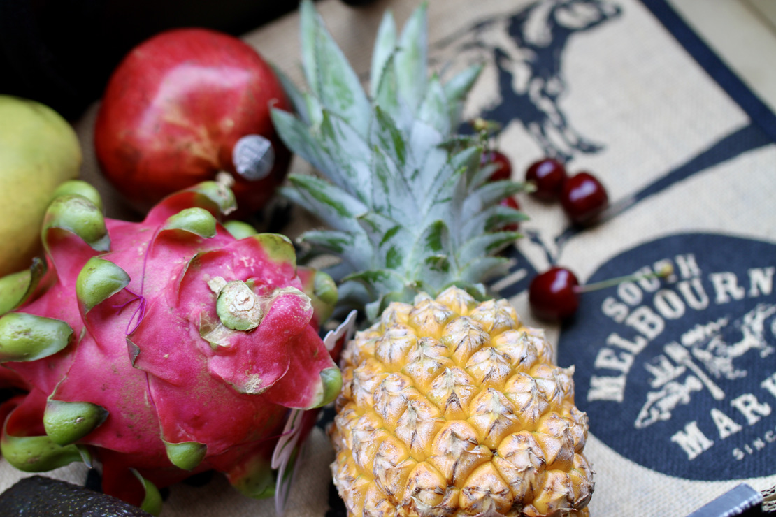 Our favourite tropical fare of dragonfruit, mango, papaya and melons are on display