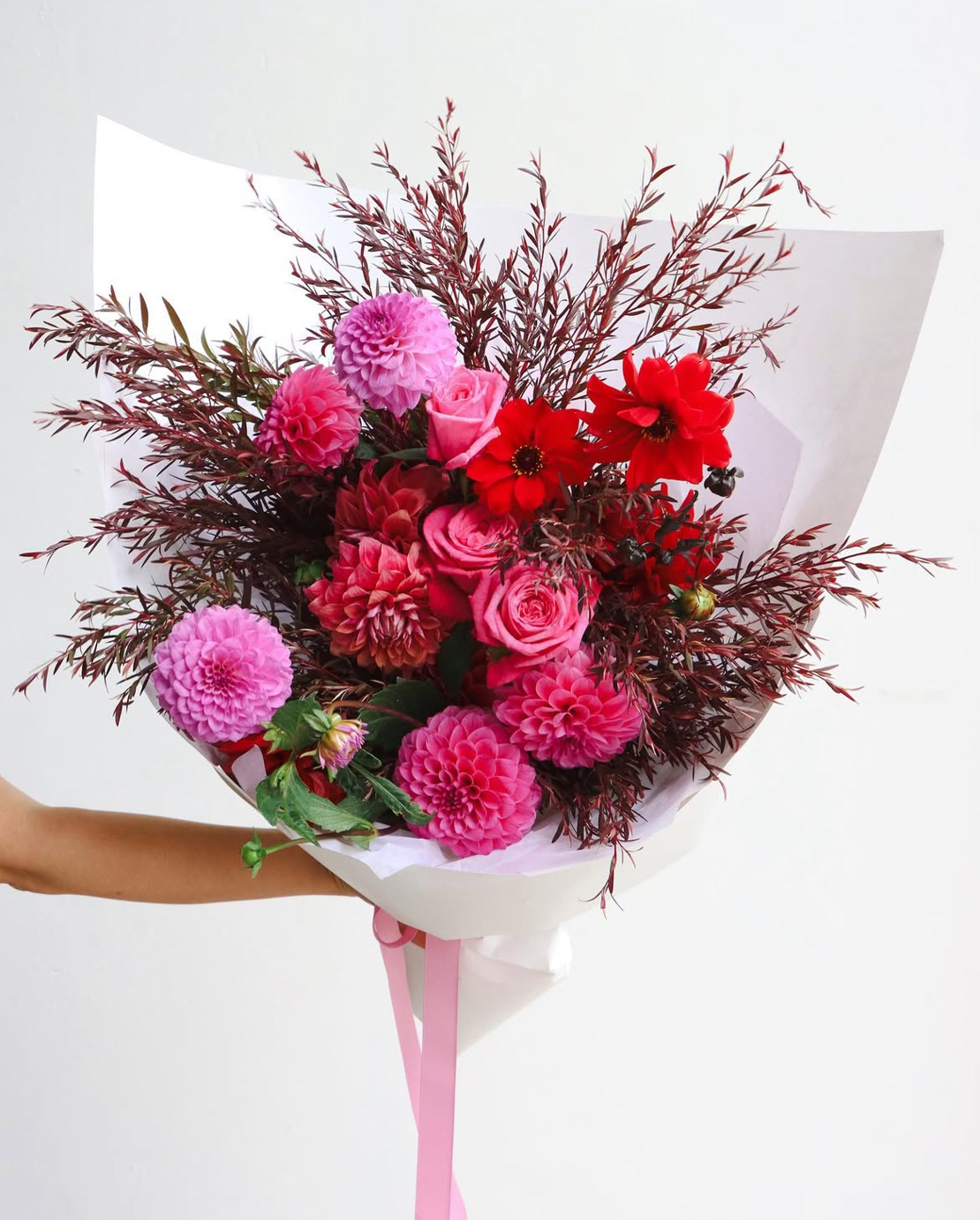 Emerald Hill Florist will allow you to pick out the bunches you want and will create a bouquet from them. We love the idea of stepping away from traditional long-stem roses. Choose something bright and colourful!