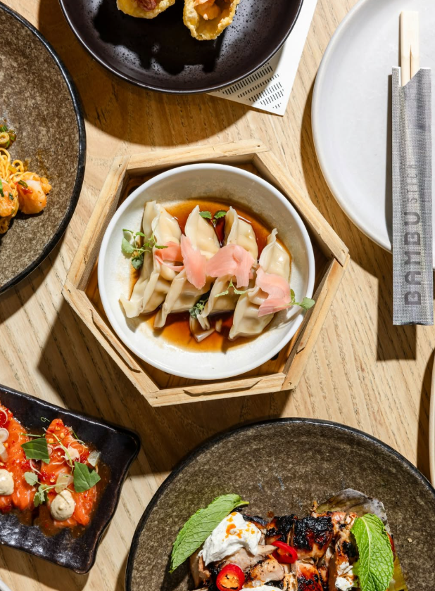 Bambu: Make it a spicey one at Bambu, with their exclusive V'Day Banquette to share - a specially curated set menu for $65pp. Enjoy a spread of tiger prawn wonton tacos, king salmon sashimi, honey soy chicken dumplings, BBQ chicken tikka, sticky beef short ribs with a fresh green mango salad, and Singapore noodles with chili tiger prawns. Finish the night with their Peaches + Cream dessert.