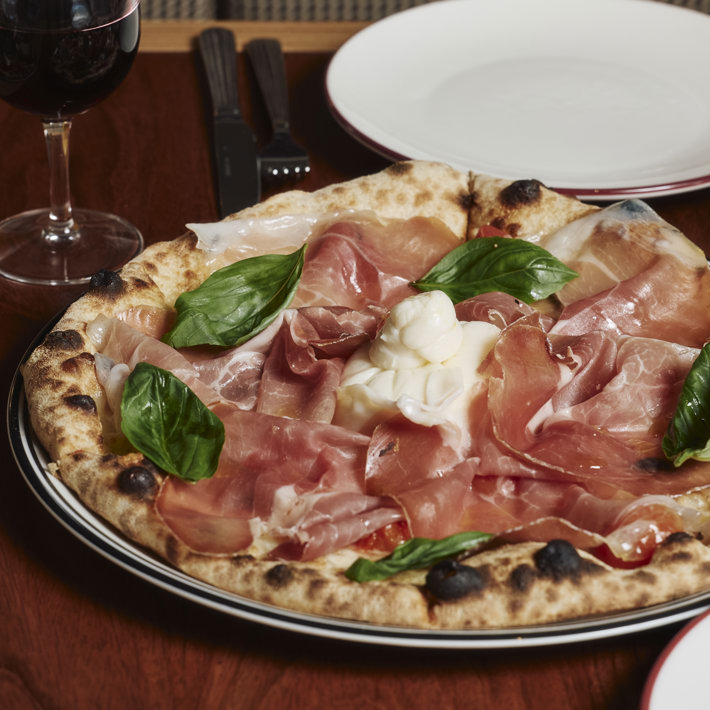 The dine-in menu kicks things off with antipasti, fried globe artichokes, fritto misto, and a selection of artisanal cheeses and meats. The mains include a handful of pastas using Pastificio Liguori - one of the oldest pasta producers in Italy - include traditional Roman styles carbonara tubettone, cacio e pepe spaghetti, and amatriciana fusilli, alongside other crowd pleasers such as a seafood scoglio calamarata and pork ragu tortiglioni. The dine-in pizza menu features a selection of 13-inch pizza tonda with classic options such as Margherita to a Norma; featuring fried eggplant, smoked fior di latte, cherry tomatoes, ricotta salata and basil. Other highlights include an Aeolian, featuring san marzano, fried capers, black olives, oregano and anchovies; Salsiccia with pork & fennel sausage, spigarello, yellow tomato, smoked fior di latte and carmelised tropea onion; and Gamberi with tiger prawns, cherry tomatoes, fior di latte and pickled zucchini. Traditional toppings can also be added to any pizza including mozzarella bufala, stracciatella, rocket, and anchovies. Those in the mood for dessert can enjoy a traditional tiramisu and sweet pizzas with seasonal fruits.