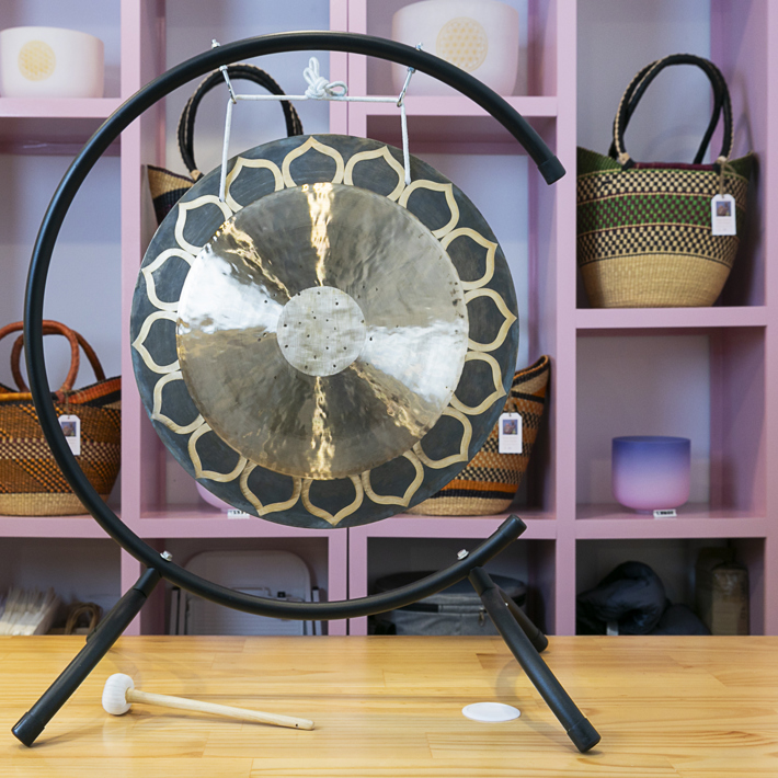 Michelle shows us a variety of their items: steel drums, ankle shakers, rain sticks, percussion pieces, djembe drums and crystal bowls. These are each attractive in their own right and beckon experimentation with their tactile materials and shapes, including a percussion piece shaped as a frog, its grooved spine forming the channel for sound. The crystal bowls are made of quartz and are especially alluring, they come in colourful gradients and correspond to distinct emotions and chakras. These are commonly known as healing bowls and have been used by Tibetan and Buddhist cultures for thousands of years. After a tragic life event, Jess practiced with the bowls and found significant healing in sound therapy. It is not a surprise that they are often used in professional yoga and meditation studios. They look beautiful and precious, but we are told that all of the instruments can last a lifetime if cared for properly.