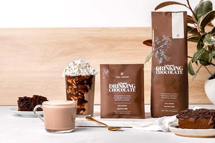 Tea Drop have perfectly blended drinking chocolate made with the finest West African cocoa powder and raw Australian cane sugar for a melt-in-the-mouth drinking experience (pictured).