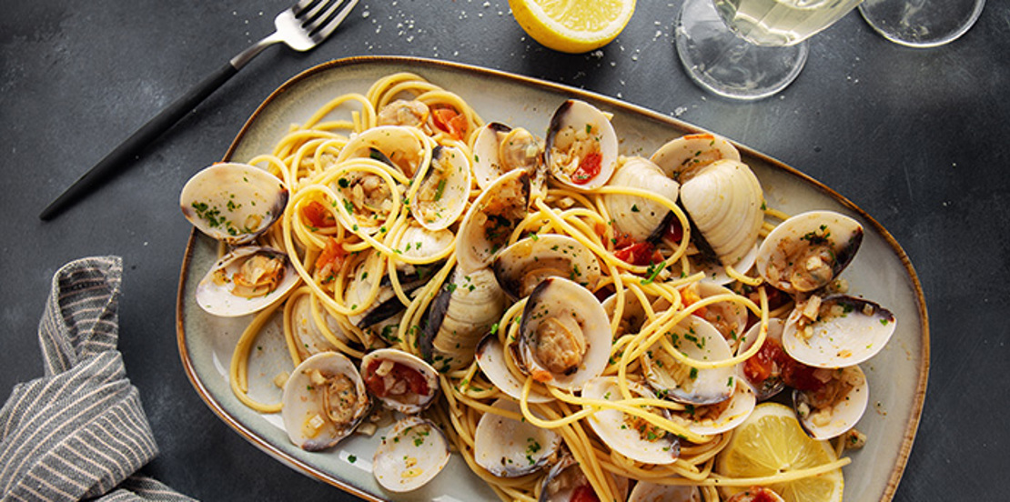 Place the clams in a sink of cold water and wash well to remove sand. Place the clams in a colander inside a large bowl and run cold water over it for 15 minutes. The clams will spit out any residue. Heat a large pot of salted water, add spaghetti and boil for five minutes. Strain off and coat with olive oil. Heat olive oil in a large saucepan. Add garlic and chilli until the garlic starts to brown. Add the white wine and clams, then cover the pan to steam. Once the clams have opened add the spaghetti, parsley and pepper and serve.